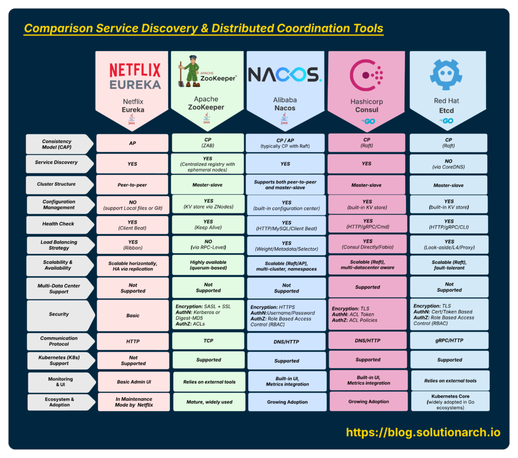 Here’s a comparison of key features across major distributed coordination and configuration tools.